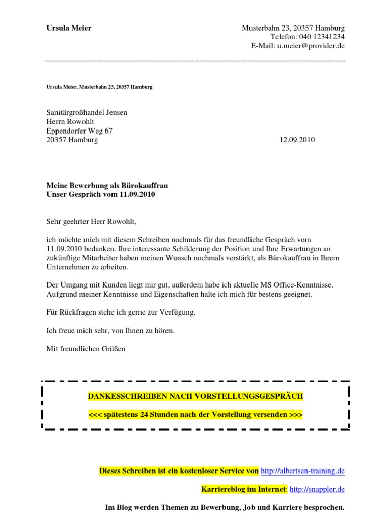 Dankschreiben Nach Vorstellungsgesprach