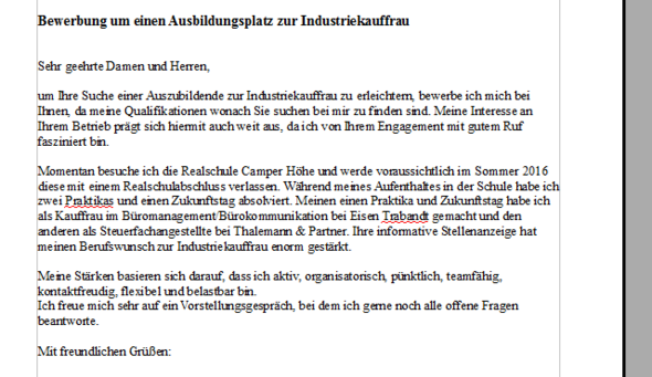 Musterbewerbung Um Eine Ausbildung Zum Industriekaufmann