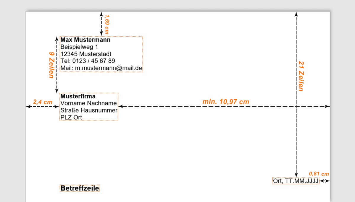 Beispiel für einen ansprechend gestalteten Briefkopf des Bewerbungsschreibens in unserer Shop-Vorlage. Zuerst befindet sich in einem Anschreiben der sogenannte Briefkopf. Nachfolgend finden Sie eine klassische Vorlage.