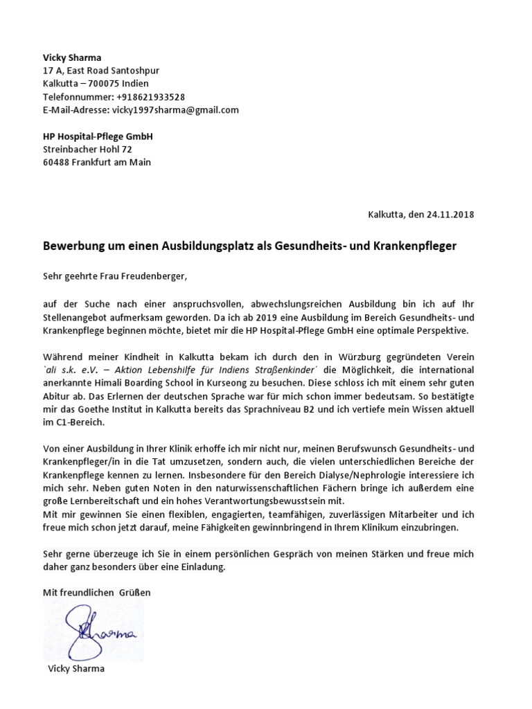 Bewerbung Als Gesundheits Und Krankenpflegerin Ausbildung