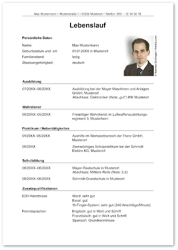 Www Bewerbungs 1x1 De Der Lebenslauf